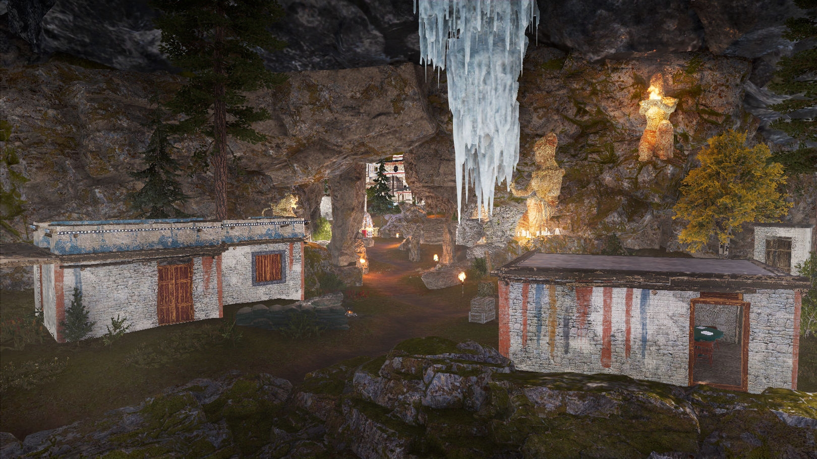 This is a multiplayer ‘team Deathmatch’ map set in a deep, rocky, gorge. Players can engage in ranged combat, taking cover behind rocks and firing across the gorge, or push down to find better weapons. The gorge mixes wide open areas on the surface with tight, twisting, caves underneath.