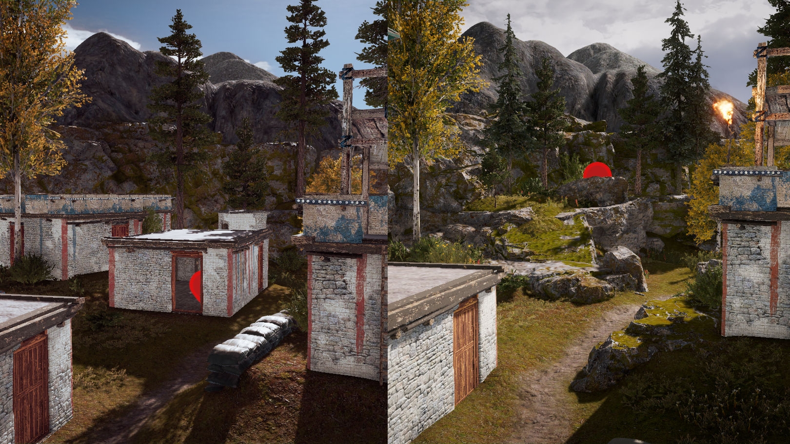 • Blocked off the main gate to redirect the player around the to left, making full use of the physical space.