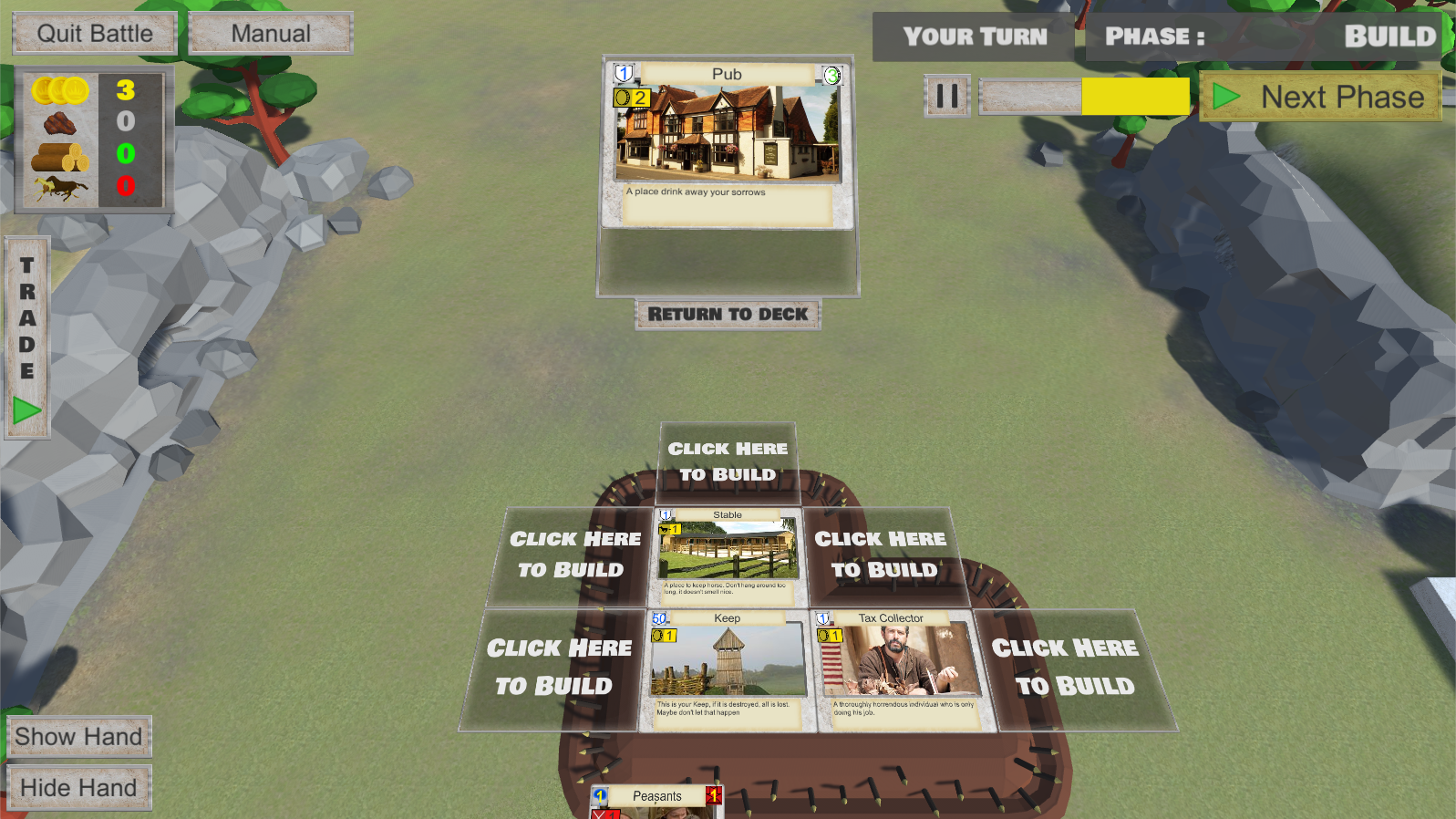• Build: Use your resources to play a building card and improve your castle